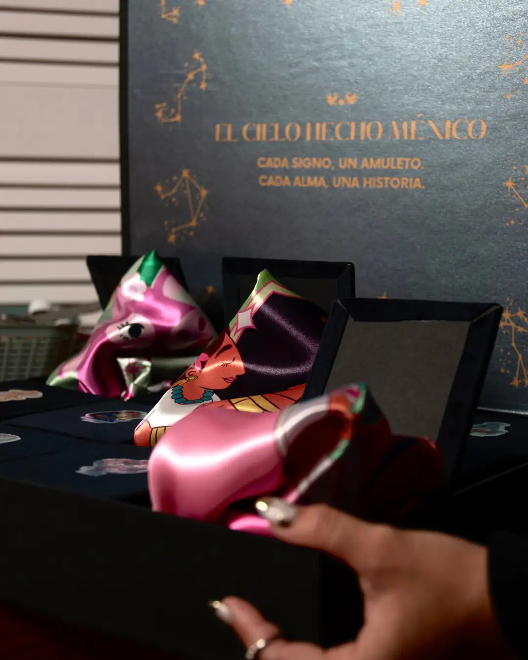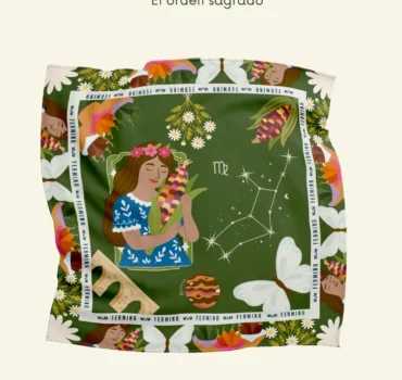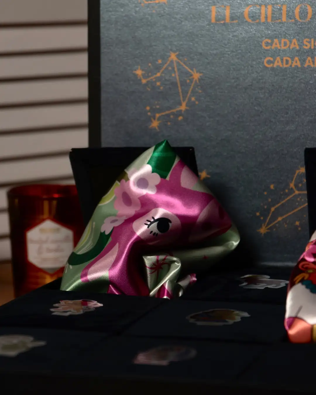 En esta colección encontrarás una pañoleta para cada signo, diseñada con arte exclusivo que transforma su energía en un amuleto visual.