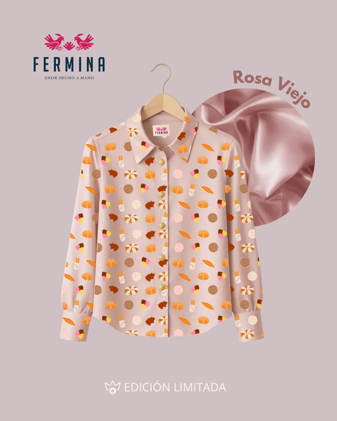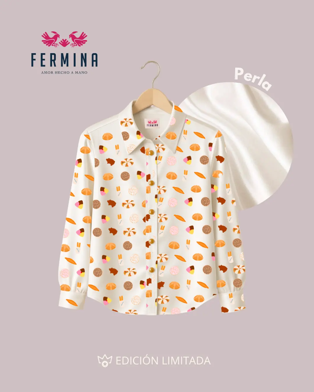 Cada camisa “Pan Dulce” es una pieza artesanal hecha con amor, ilustrada con conchas, orejas, roles y cuernitos que nos recuerdan los desayunos con abuela, las tardes con amigas, los cafés compartidos y el calor de hogar.