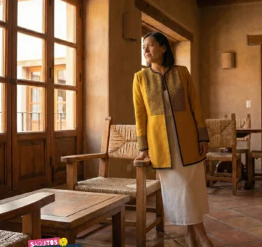 Saquito artesanal  con bordado tradicional en telar de pedal, inspirado en la energía cálida de Oaxaca y en la fuerza de las mujeres que iluminan su camino.